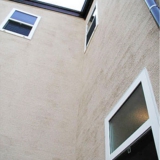 南側を高いよう壁に阻まれ日当たりが心配されたが吹き抜けに設けた2つの大型窓が問題を克服。