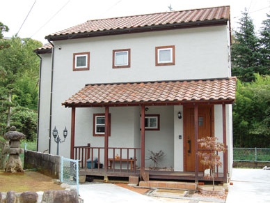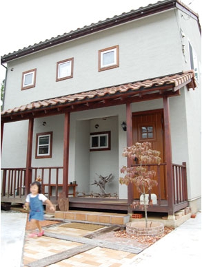 壁材:漆喰珪藻土、ラウファーザー(ドイツ製)/床材:パイン材、スペインタイル/ 外装材:外断熱工法・塗り壁コテ仕上げ/屋根材:洋瓦/キッチン:国内メーカー/バス:国内メーカー/トイレ:国内メーカー/サッシ:樹脂サッシ・ Low-eガラス/使用塗料:リボス(ドイツ)
