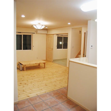 壁材:漆喰珪藻土、ラウファーザー(ドイツ製)/床材:パイン材、スペインタイル/外装材:外断熱工法・塗り壁コテ仕上げ/屋根材:洋瓦/キッチン:木製キッチン(ドイツリボス塗装)/バス:国内メーカー/トイレ:国内メーカー/洗面:木製(メーカー品)/サッシ:樹脂サッシ・Low-eガラス/使用塗料:リボス(ドイツ)