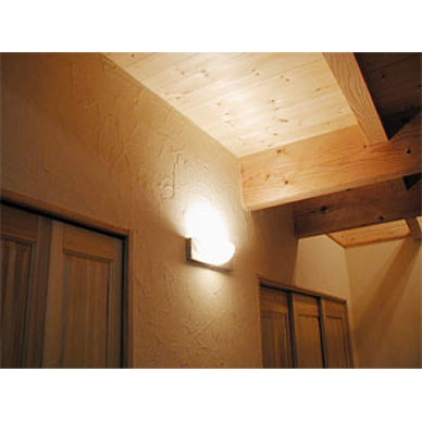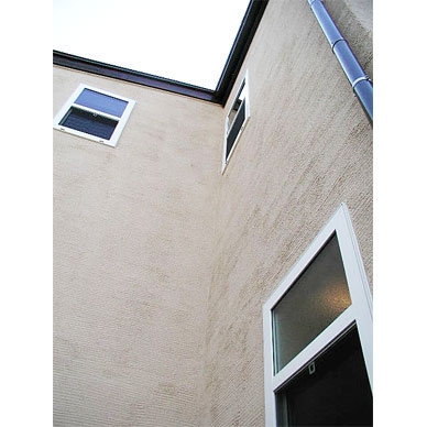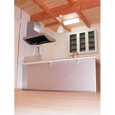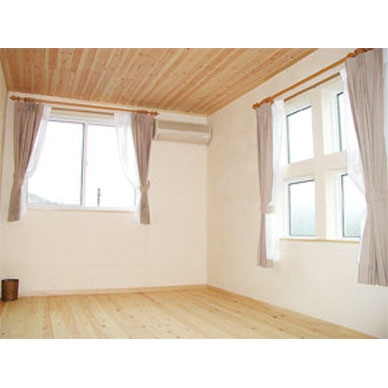 壁材:漆喰珪藻土、無垢羽目板張/床材:パイン材、スペインタイル/外装材:外断熱工法・塗り壁櫛引き仕上げ/屋根材:ガルバリウム鋼板/キッチン:国内メーカー/バス:国内メーカー/トイレ:国内メーカー/サッシ:樹脂サッシ・Low-eガラス/使用塗料:リボス(ドイツ)