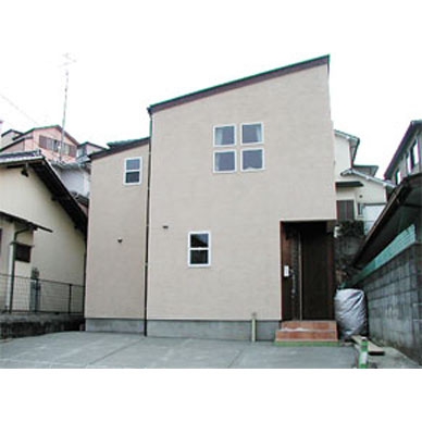 南側を高いよう壁に阻まれ日当たりが心配されたが吹き抜けに設けた2つの大型窓が問題を克服。