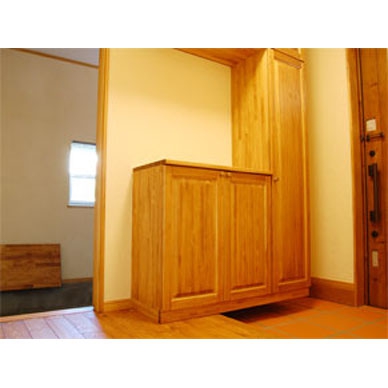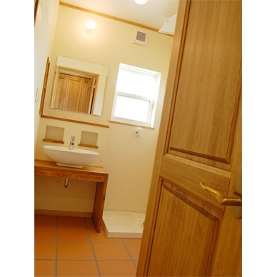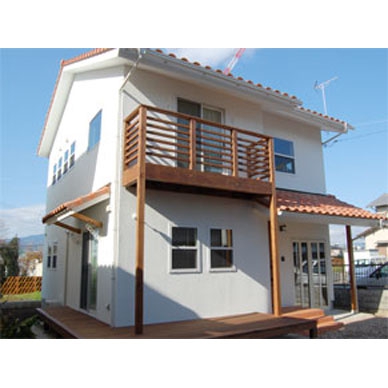 壁材:漆喰珪藻土/床材:無垢パインフローリング/外装材:外断熱工法・塗り壁コテ仕上げ/屋根材:洋瓦/キッチン:国内メーカー/バス:国内メーカー/トイレ:国内メーカー/洗面:手造り/家電棚:手造り/サッシ:樹脂サッシ・ Low-eガラス/使用塗料:リボス(ドイツ)