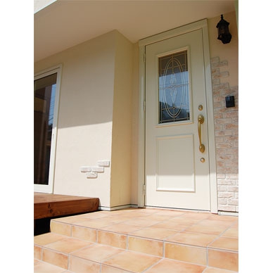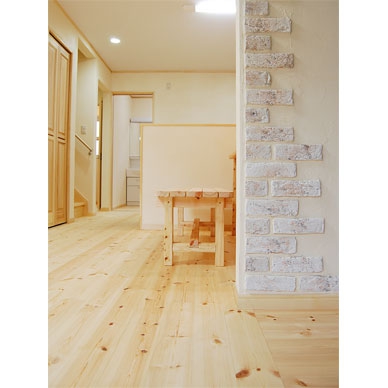 ブリックタイルをアクセントに木部がやさしい空間。