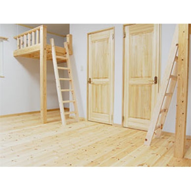 壁材:漆喰珪藻土/床材:無垢パインフローリング/外装材:外断熱工法・塗り壁コテ仕上げ/屋根材:洋瓦/キッチン:国内メーカー/バス:国内メーカー/トイレ:国内メーカー/洗面:国内メーカー/ロフトベッド:手造り木製/サッシ:樹脂サッシ・ Low-eガラス/使用塗料:リボス(ドイツ)
