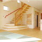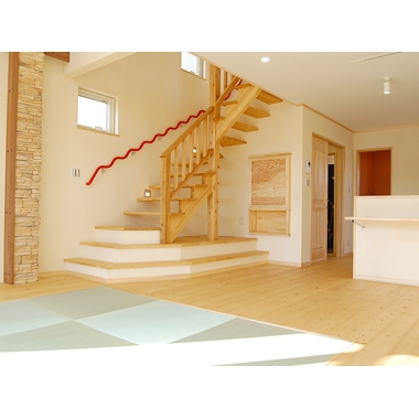 リビングに大胆に配した畳やモダンな階段の手すり。