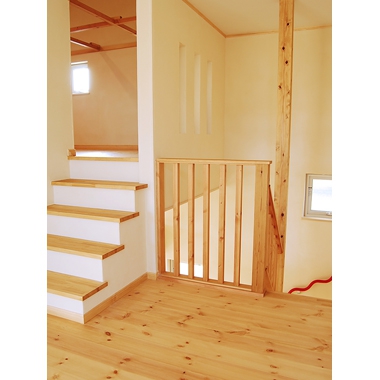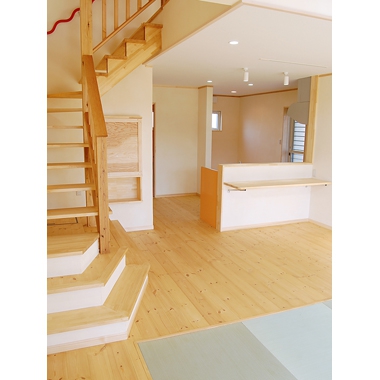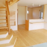[壁材]漆喰珪藻土 [床材]無垢パインフローリング [外装材]外断熱工法・塗り壁コテ仕上げ