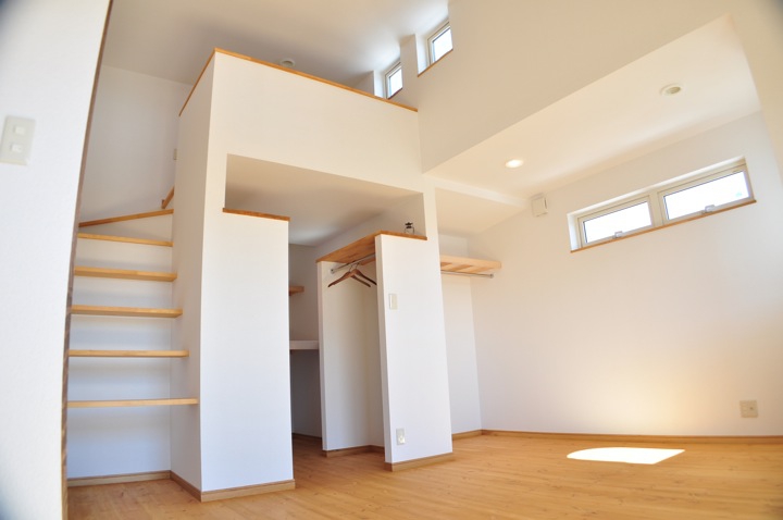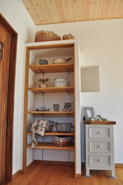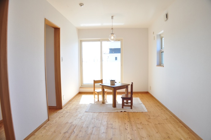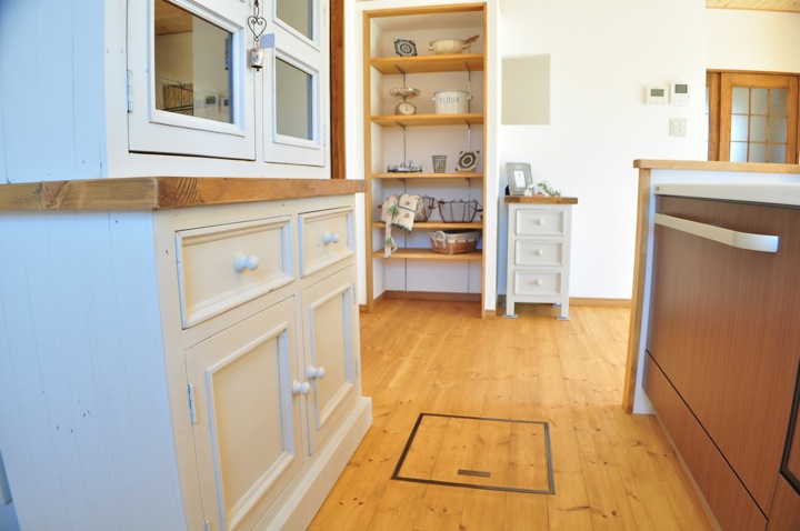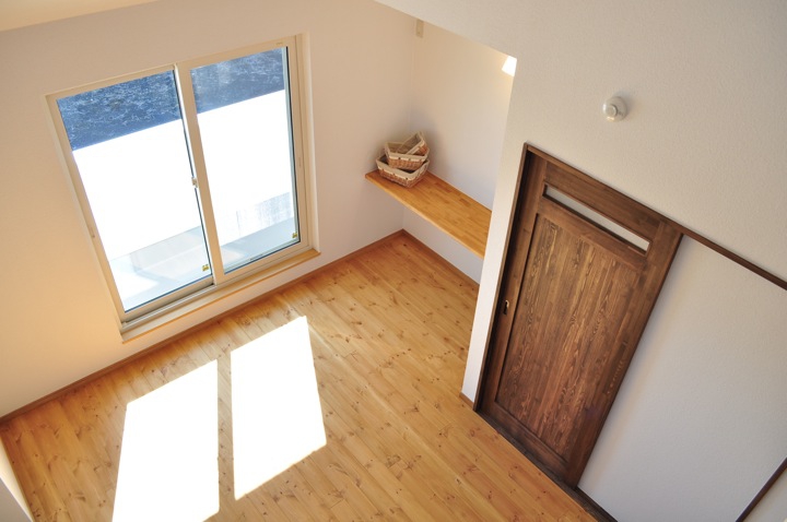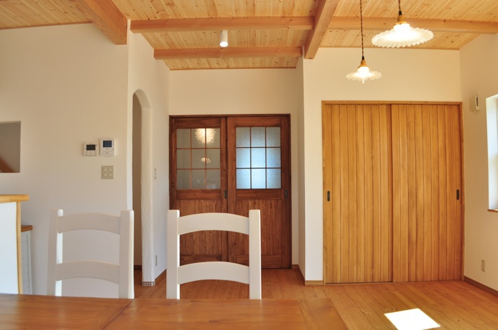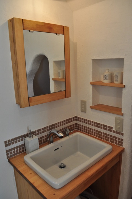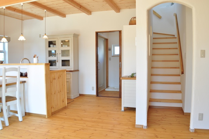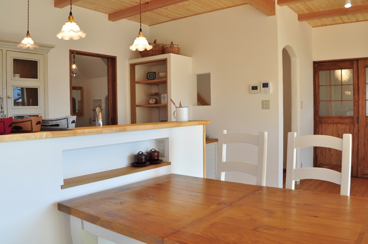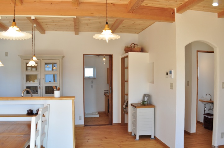 デコボコした洞窟のような塗り壁がパインフロアーとよく合います。