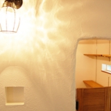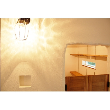 壁の一部はショートケーキをスプーンでほじったような出入り口がラフでかわいい。