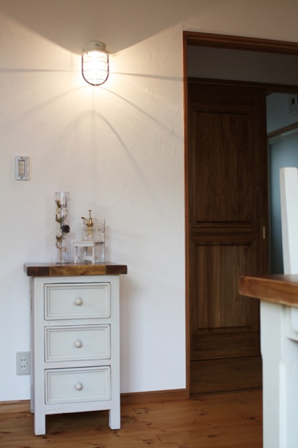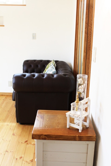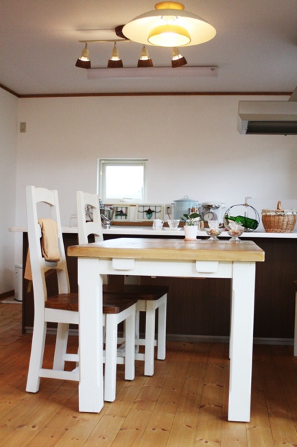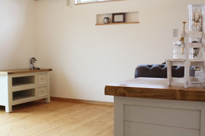雑貨好きのご夫婦が、自分たちの大好きなものに囲まれて暮らすナチュラルでちょうどいいサイズのお家。ナチュラル家具と、雑貨のお店kitolとコラボすることで、ソファー・TVボード・カップボード・照明器具・雑貨小物などをトータルコーディネートし、統一感のあるインテリアを実現しました。