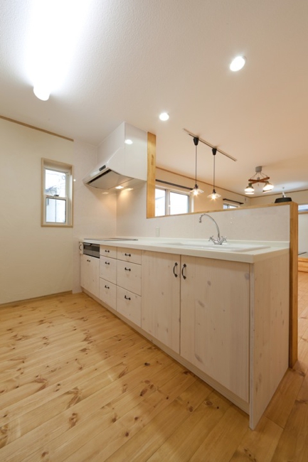 キッチンや洗面台の水廻りはママこだわりのナチュラルで可愛いホワイトを基調に設計しました。