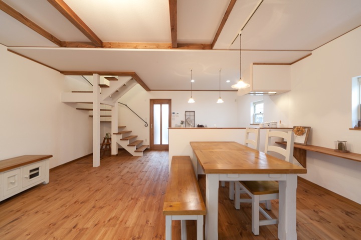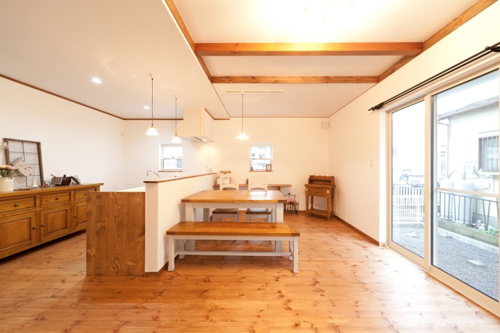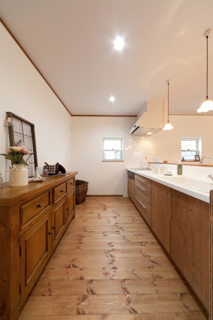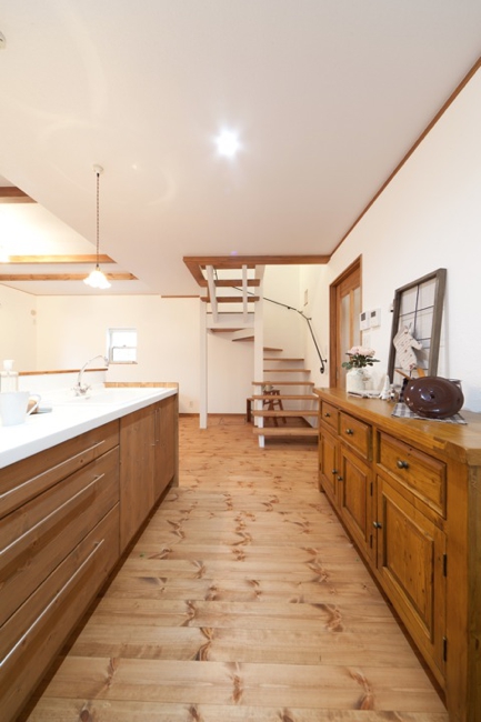 そして、内部はkitolオリジナルキッチンやペンダントライト、オールドパイン家具が