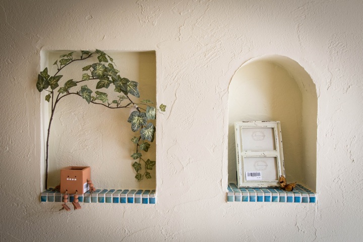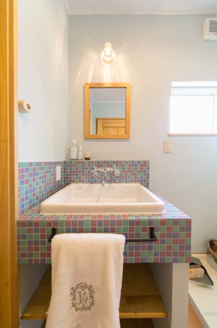 ポイントでパステルカラーの挿し色を取り入れていますが