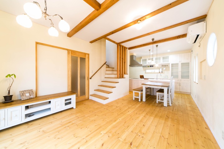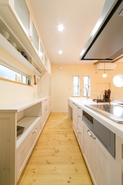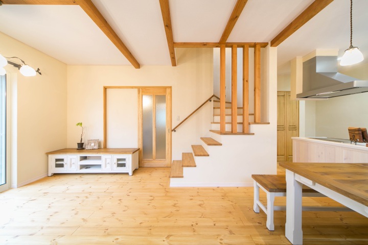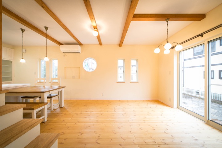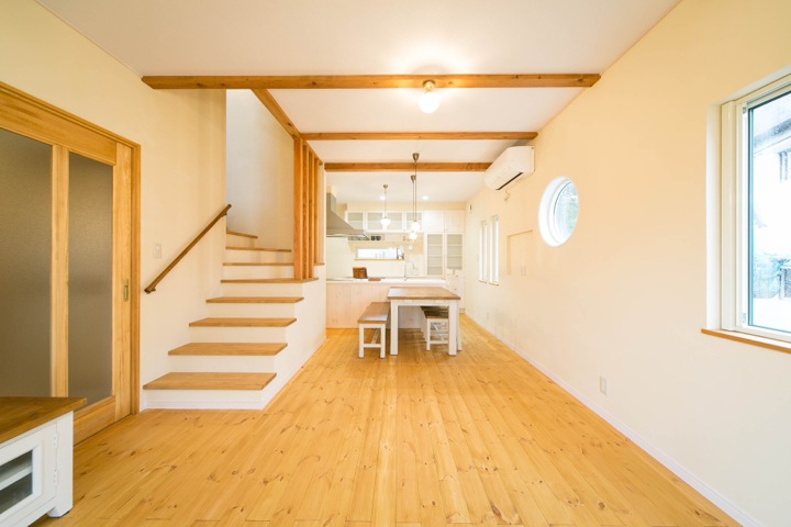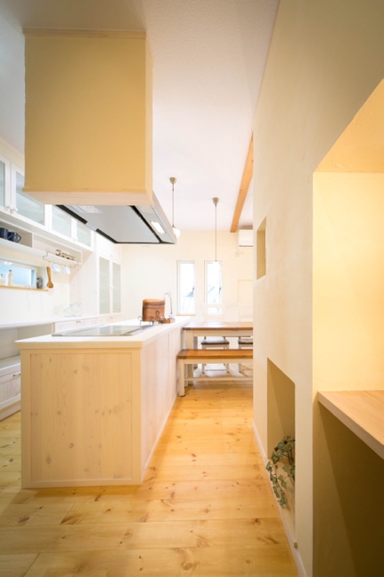 [壁材]漆喰珪藻土 [床材]パイン無垢 [外壁]モルタル下地塗壁仕上