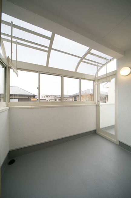 屋根には、太陽光に2階ベランダにはサンルームテラス