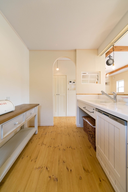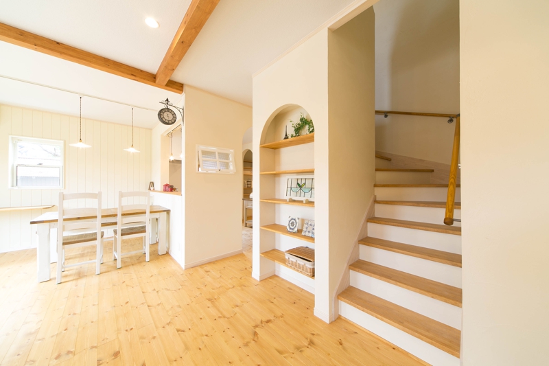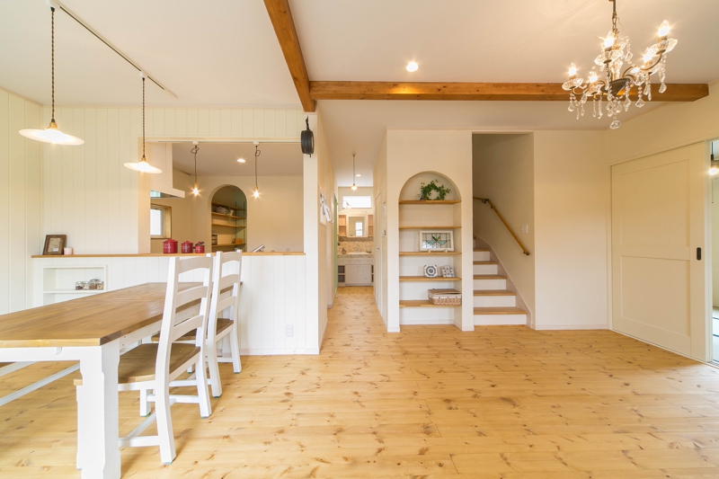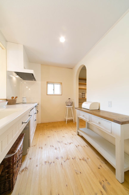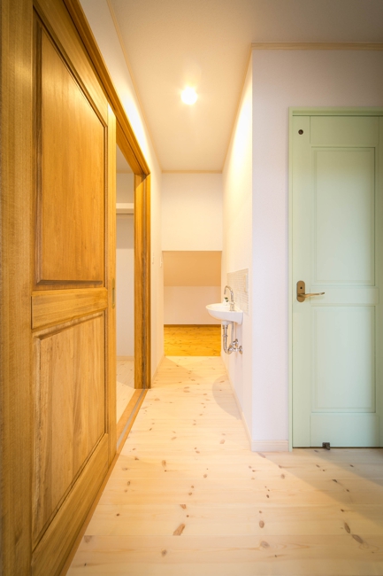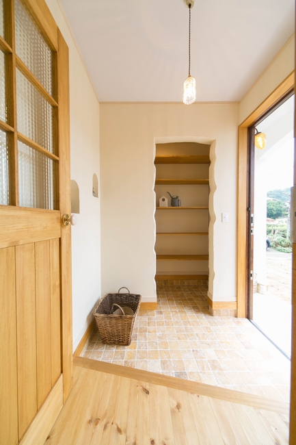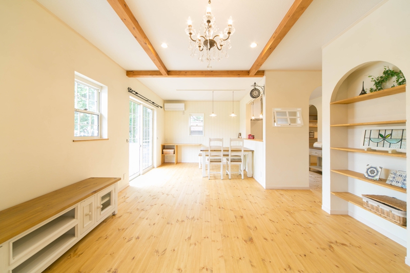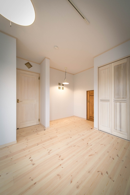 [内壁材]珪藻土左官塗り仕上 [床材]パイン無垢フローリング(LIVOS塗装)