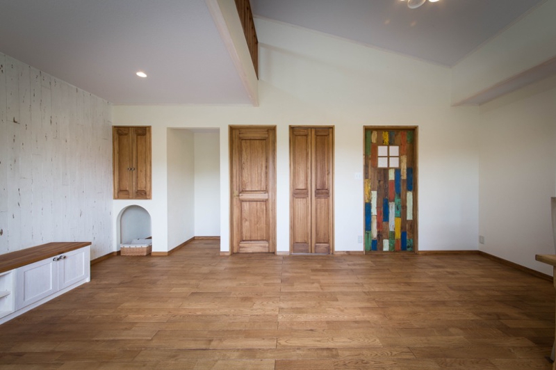 内壁は全室、漆喰調珪藻土塗り壁仕上げとしました。