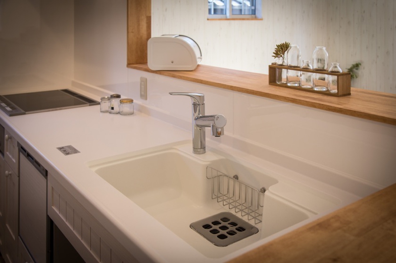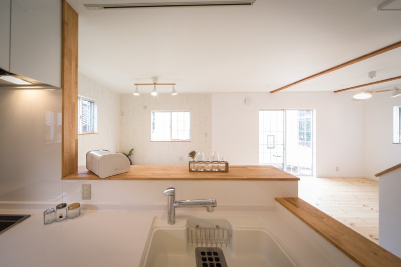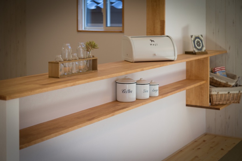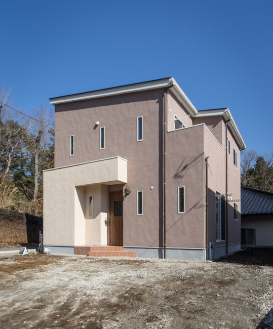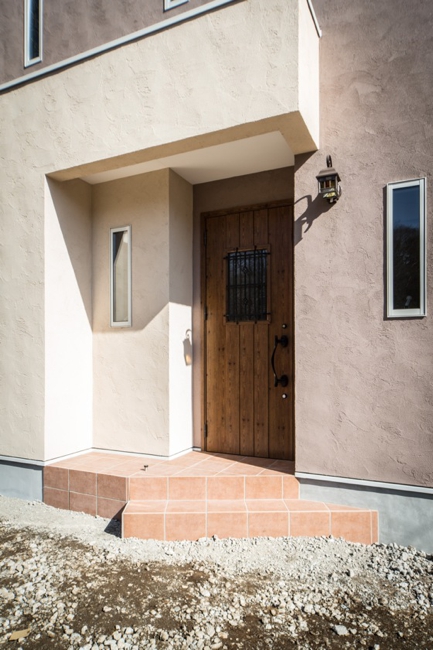 [外装材]ラスモルタル下地+塗り壁コテ仕上 [キッチン]木製扉キッチン2550I型