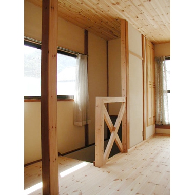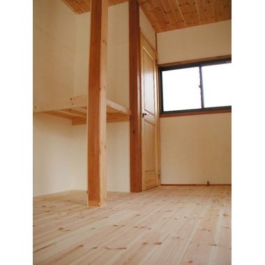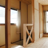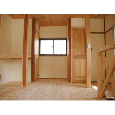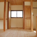 2間つながりの和室を壁を取り除きました。1部屋は畳部屋ですが上記のもう1間はパインの無垢床にしました。天井はパインの羽板目。トイレ・WICの入口ドアは安くて良品なポプラの無垢ドアを取り付けました。壁は珪藻土塗り壁で部屋全体呼吸させています。明るく澄んだ空気になりました。