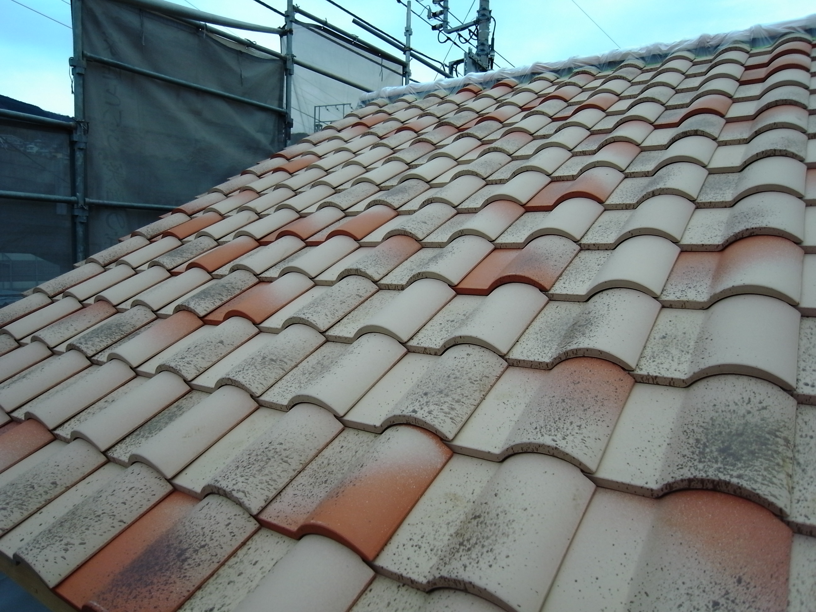伊東市内で新築中の物件ですが瓦がのりました。
