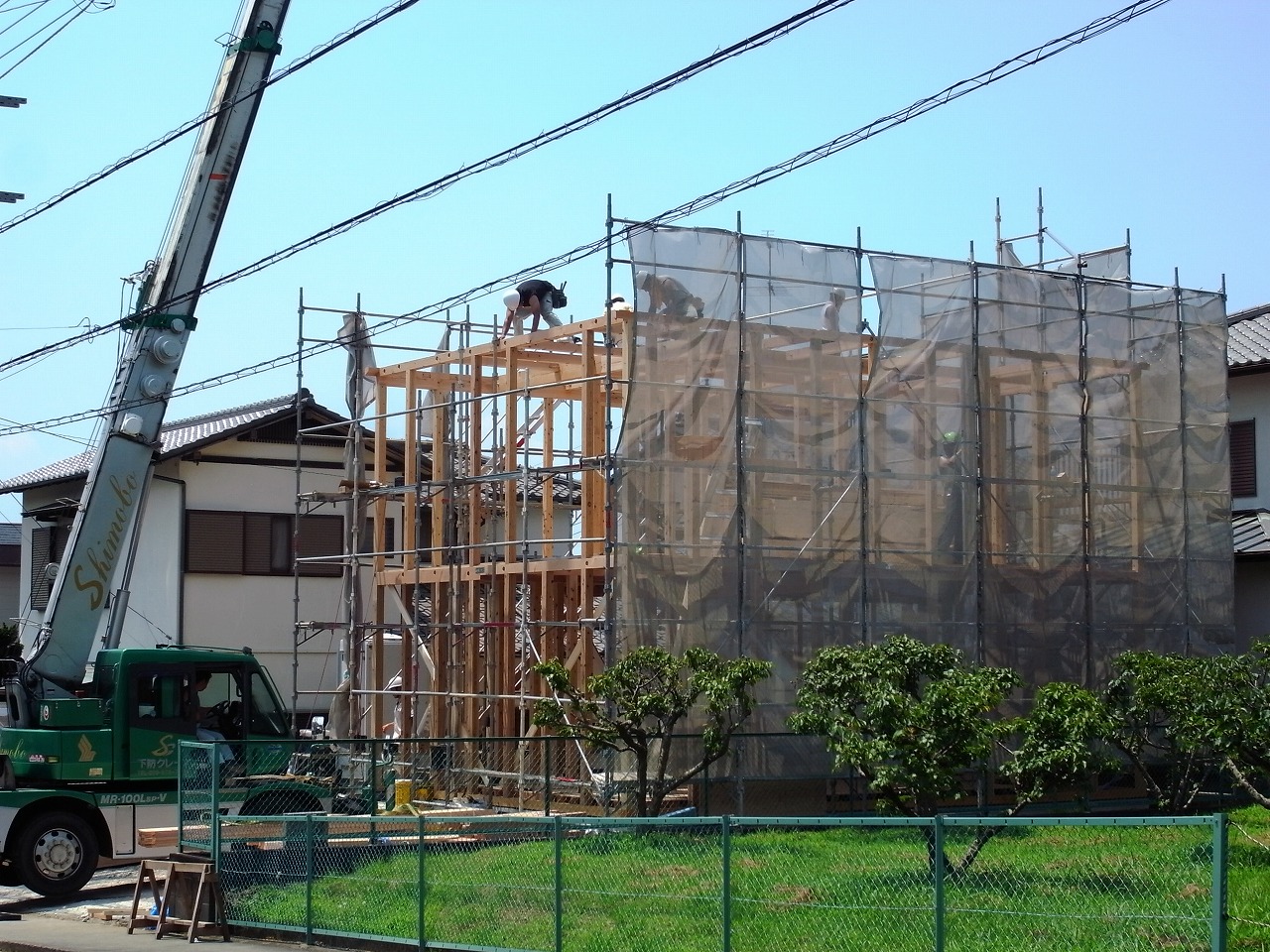 三島の新築現場は、先日上棟しました。