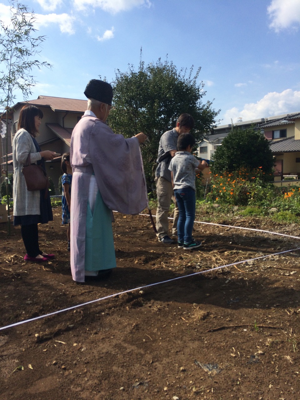 天気に恵まれ、長年待ちに待ったマイホーム実現のスタートとなる地鎮祭です。