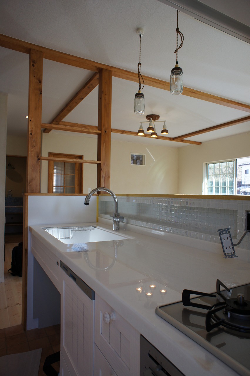 散りばめられたお家となりました。木製キッチンや