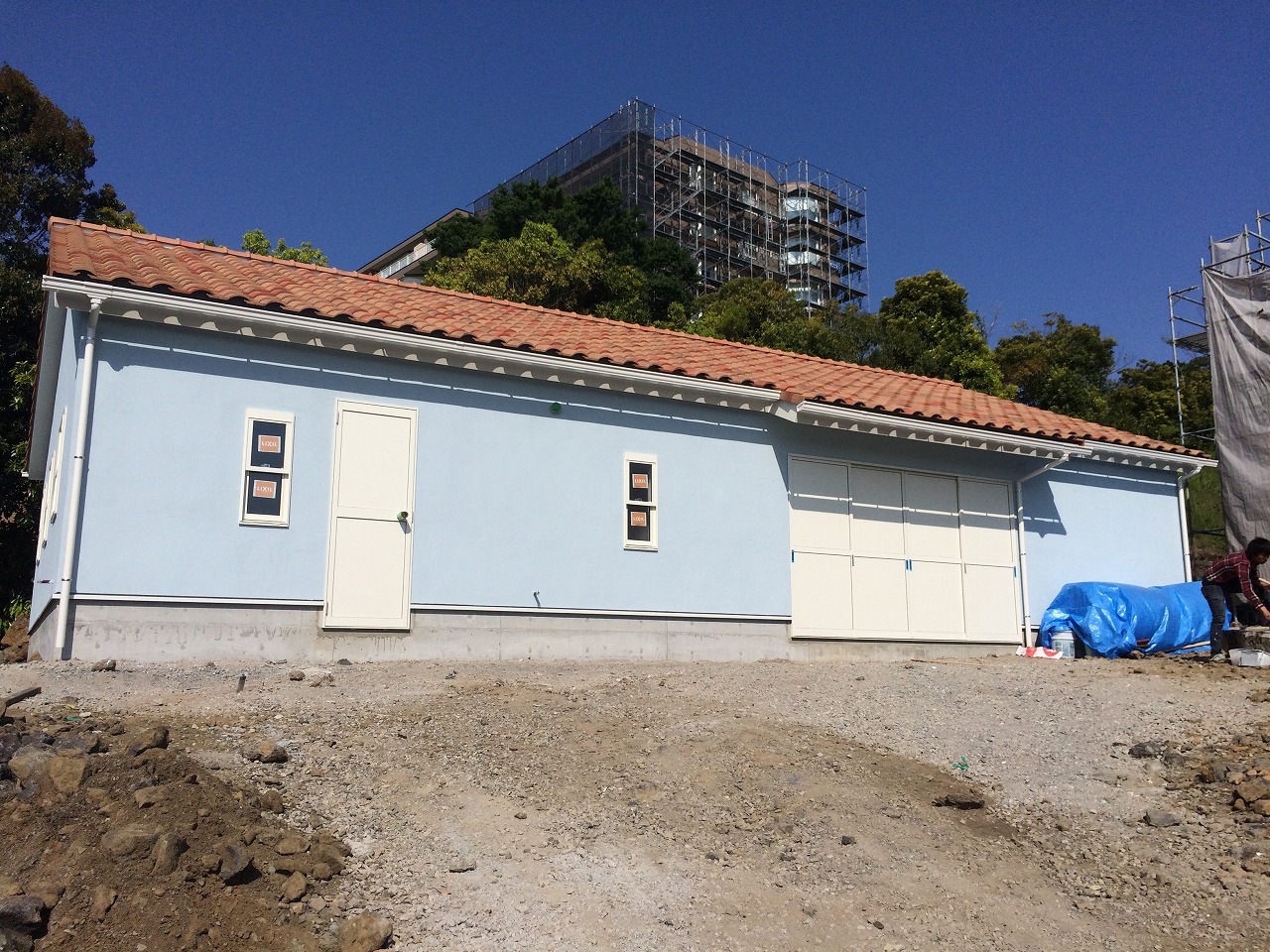 来週には隣の母屋も足場と外壁のブリックレンガも