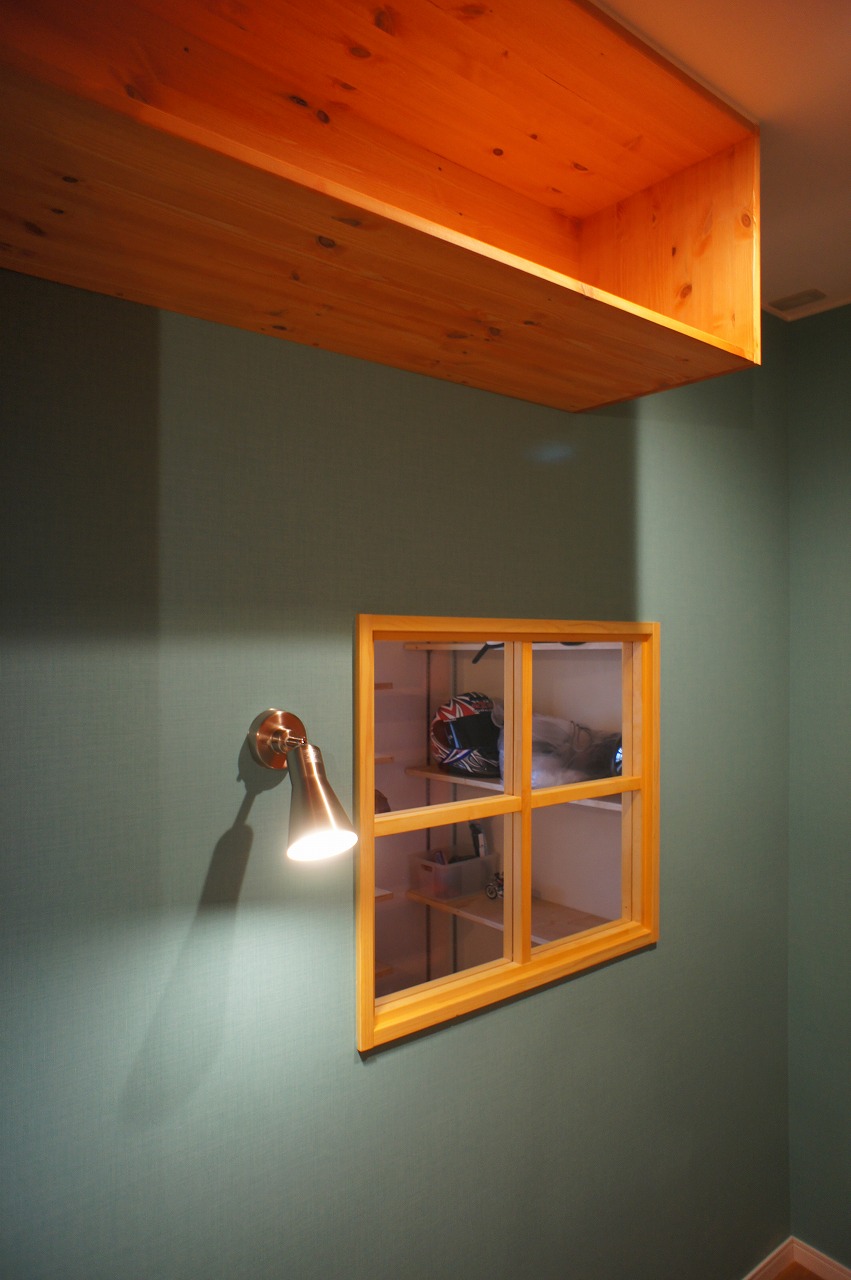 子供部屋も造作デスク兼収納棚、WICもふくろうで