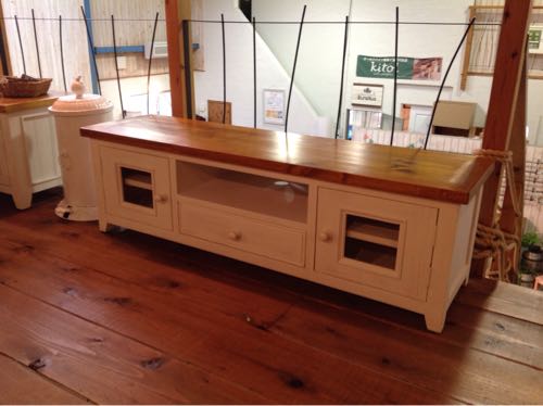 幅1500×奥行400×高さ450で、今までのテレビボードと比べると奥行が狭くコンパクトになりました