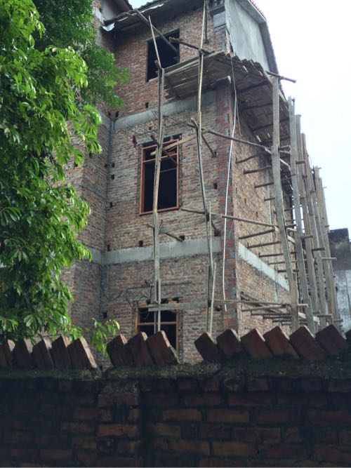田舎の方ではまだ、こんな危険な足場で施工しています。日本は安全ですね。