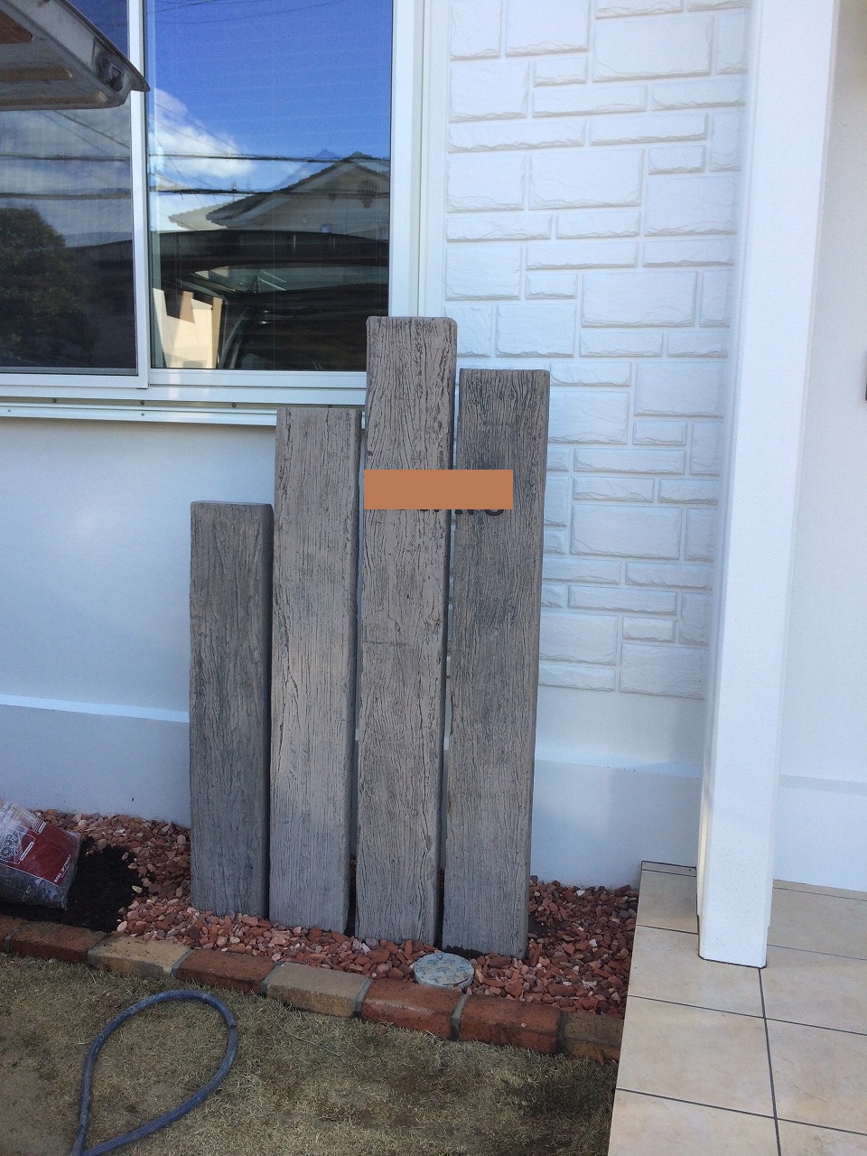 枕木の石? 2017.3.4 | お知らせ こちら 玄関横に建てました!一本60KGあります!地中に埋め コンクリートにて固定。茶色の塗りつぶし部分にはアイアンの文字表札があります。こちらはKitolのお客様からのご依頼で玄関の反対側にはKitolにて購入したアメリカンなPOSTも設置されております。お庭のこともSunplusはできるのです。