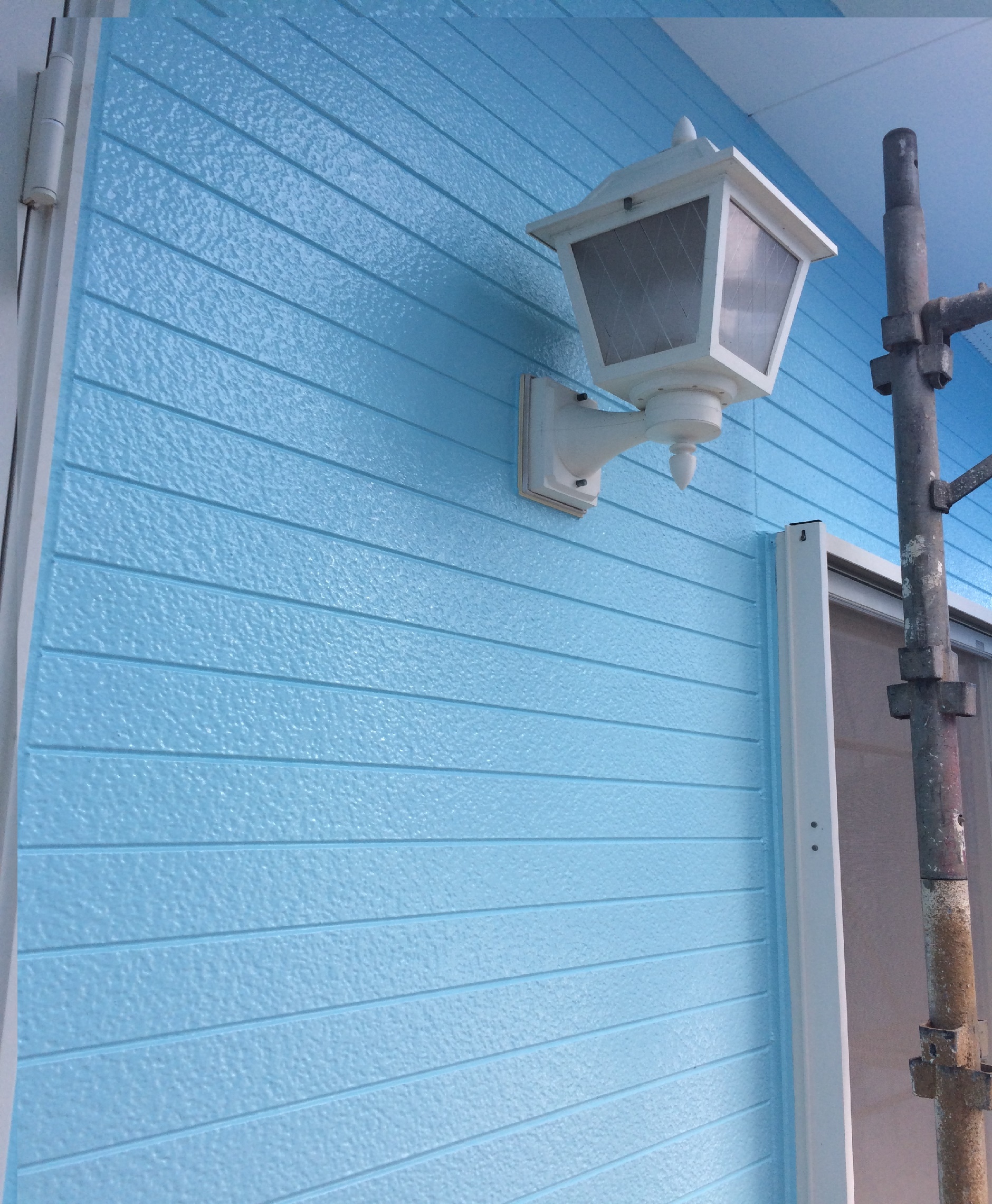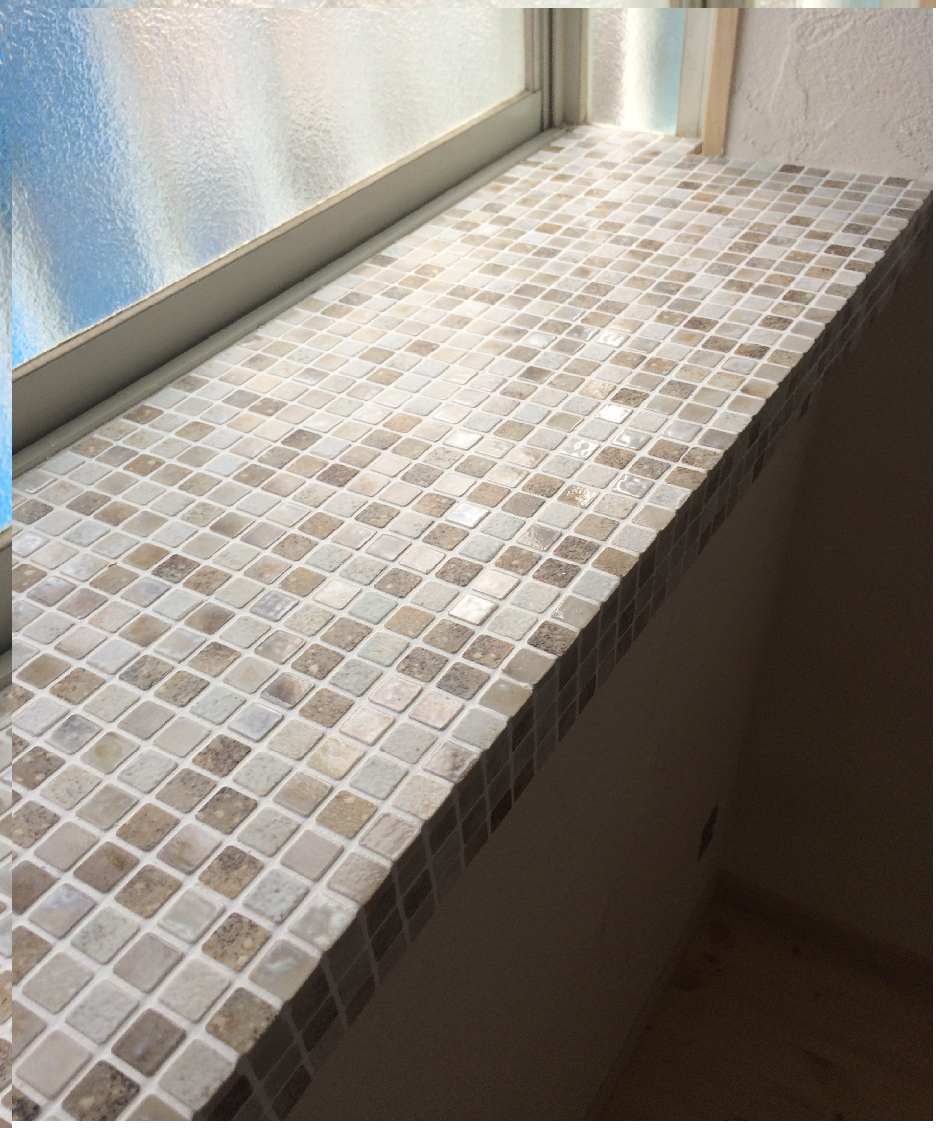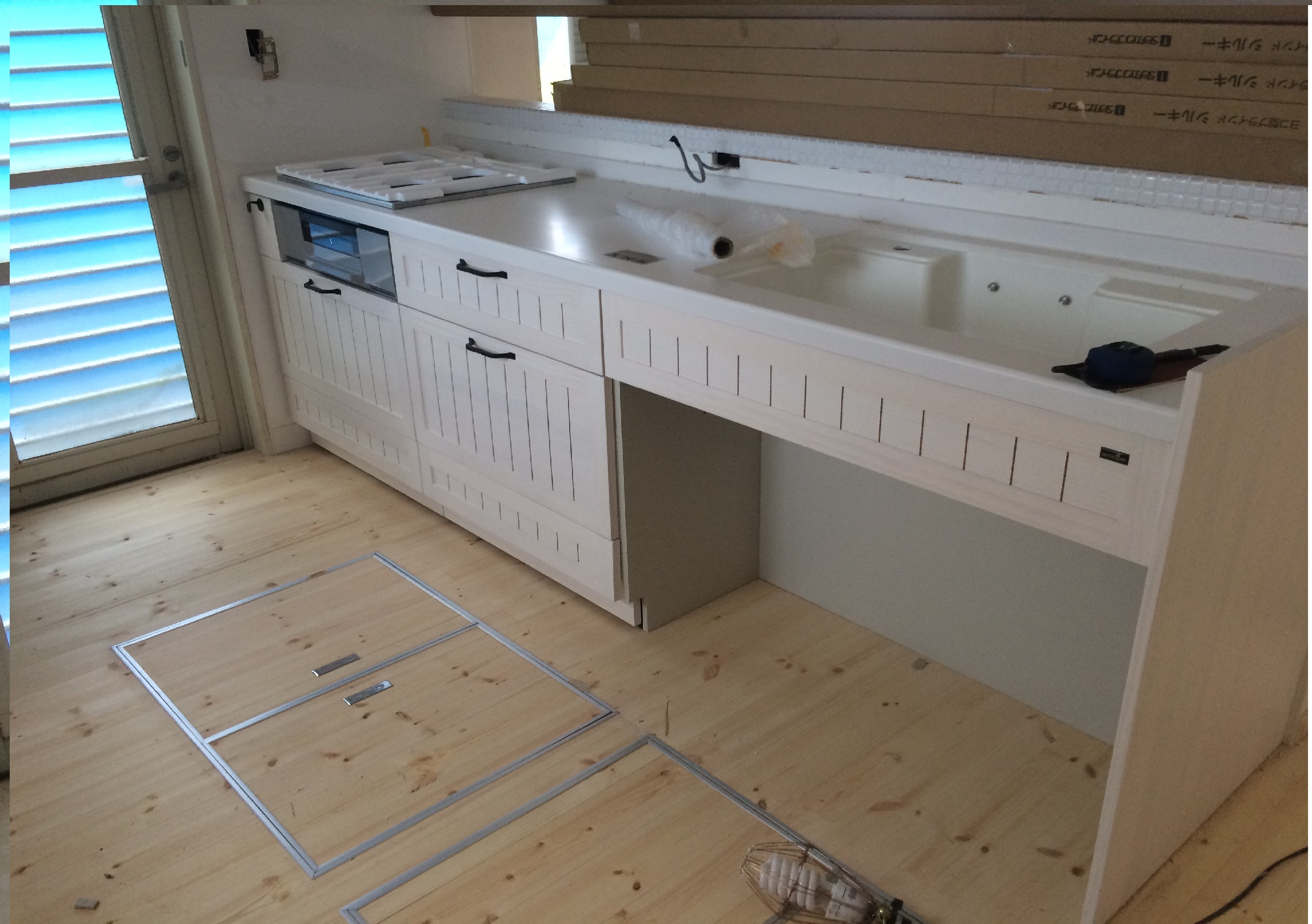 伊豆の国市リノベーションⅣ 2017.6.17 | お知らせ もう終わります リフォーム工事 キッチンも内装も完了して最終仕上げ中、スペインの漆喰 塗り壁も荒々しくて素敵です。子供部屋の女の子にはこのクロスをポイントで。キッチン背面の出窓には家具天板に張ったチップモザイクタイルを張りました。外壁も爽やかなブルーをチョイス。こちらはお施主様にお任せして塗装屋さんと色出しして決めてもらいました。来週早々には内部全て完了します。外部足場で出来なかった外のウッドデッキを残すのみです。また、少しでもお見せできればと思います。