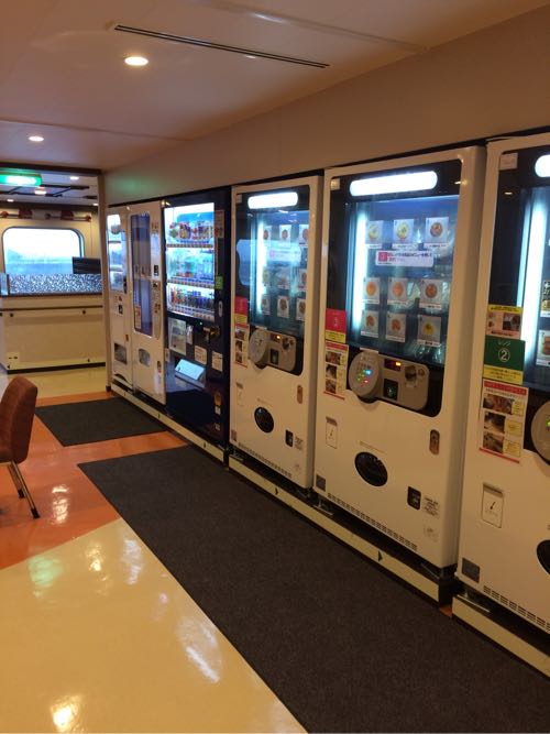 実はサンプラスでは、キトルブランドとして県外の工務店様をハウジングパーツから家具迄をサポートさせて頂いております。その一貫として、九州四国を廻って来たのですが、夜通し走るのも危険なのでフェリーなどを利用します。夕方出航して朝着く感じです。ネットも繋がらず、レストランもない場合もあります。ただただ波に揺られ時間が過ぎていく感じですが、意外にまとめる仕事ははかどります。食事は写真の様な自販機にて買います。これも意外に良いですよ。今度は、観光で行きたいですね。