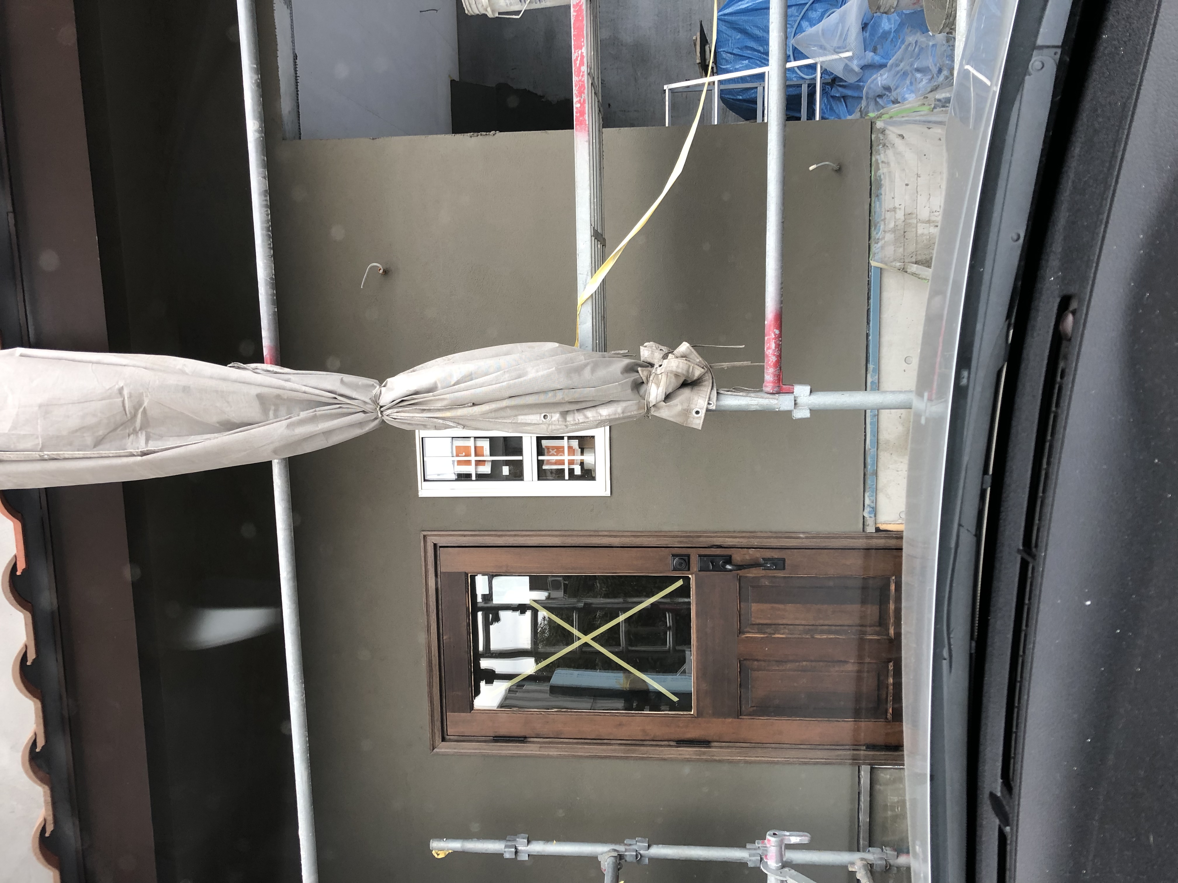 外壁塗り壁の下地工事が終わります。仕上げの塗り壁が楽しみですね。塗り壁は手間がかかりますが、仕上がった後、足場が、はずれるとなんとも言えない魅力がありまよね。当然、コストが高く、諦めているお客様も多いのでは。諦めないでほしいですね。【KITOL】では、コストが高いものを内製化していますので、サイディングの価格と、そんなに変わりませんよ。