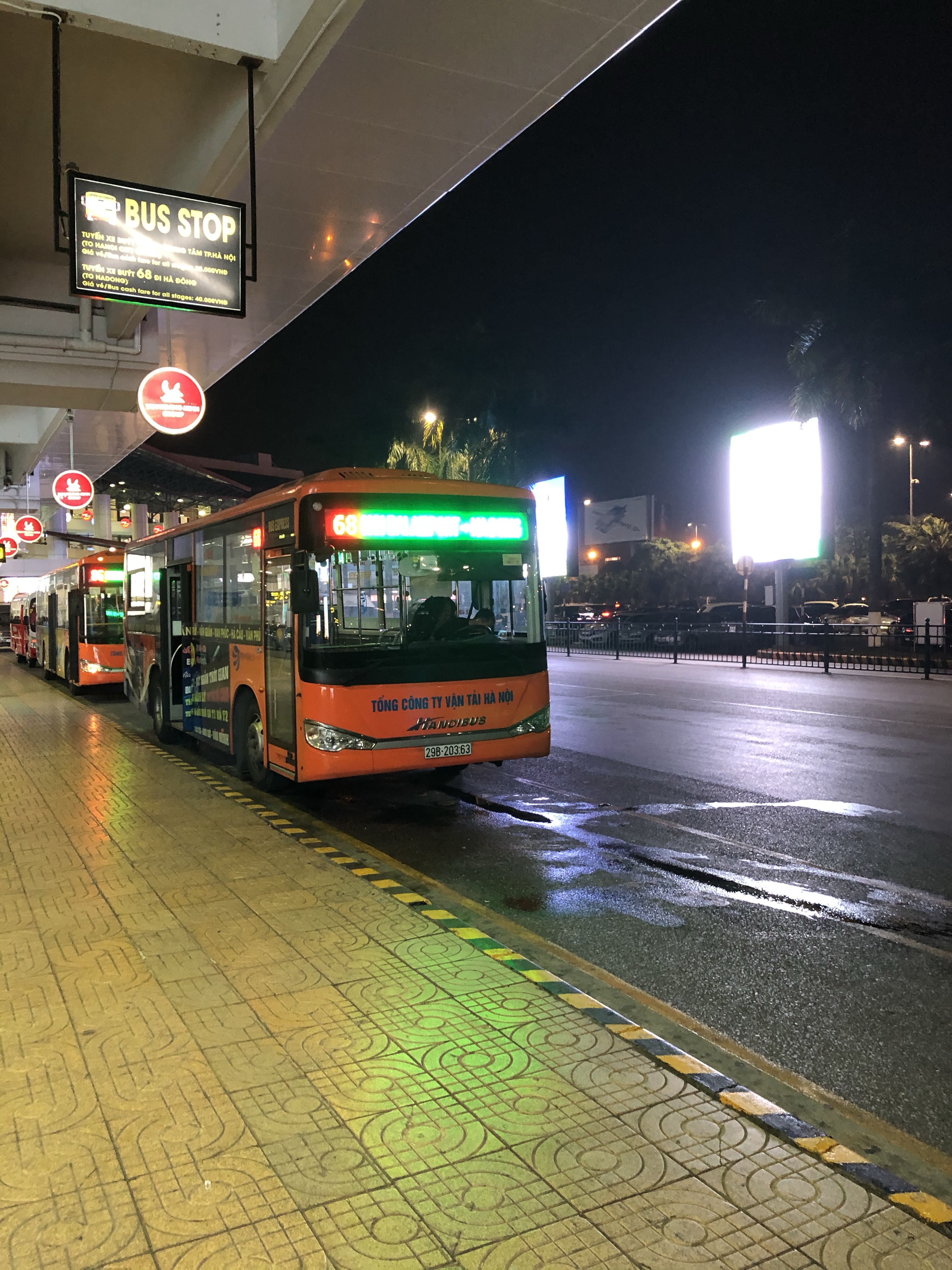 シャトルバスで移動中。慣れないと全く分からない。日本の様な親切な表示無し。